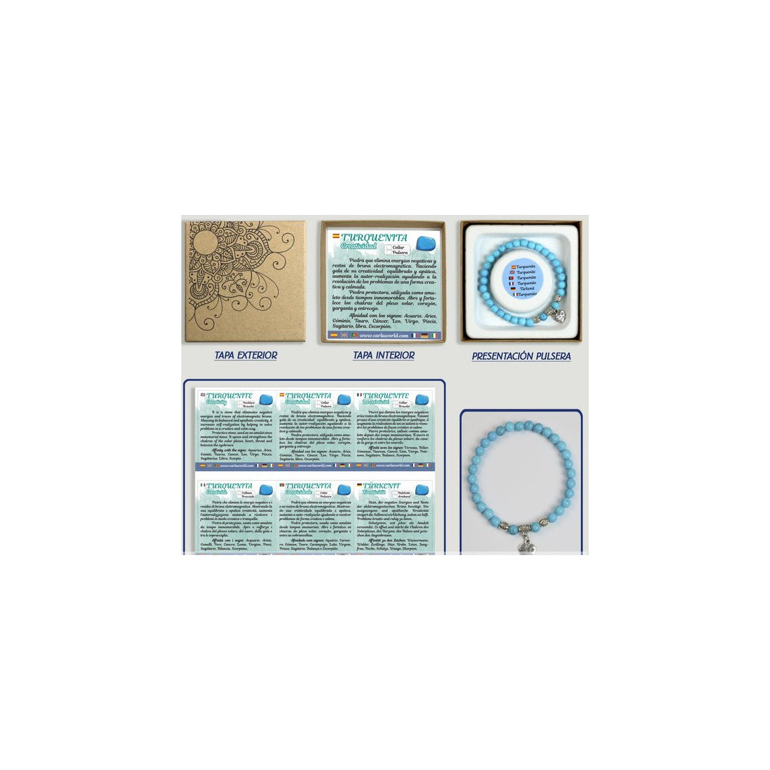 Turquenita - pedra que elimina as energias negativas e os restos de bruna eletromagnética. Mostrando sua criatividade equilibrada e apática, aumenta a autorrealização ajudando a resolver problemas de forma criativa e calma.