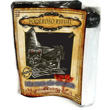 O ritual – livro negro de são cipriano é composto por uma vela figura do livro negro de são cipriano, uma essência ritualizada “livro de são cipriano”, 1 barra de defumador são cipriano, 7 velas pretas, as orações específicas e as instruções de utilização.
